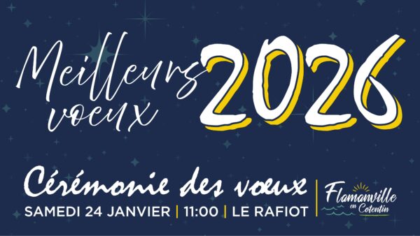 Monsieur le Maire et l’équipe municipale ont le plaisir de convier l’ensemble des Flamanvillaises et des Flamanvillais à la traditionnelle cérémonie des vœux.