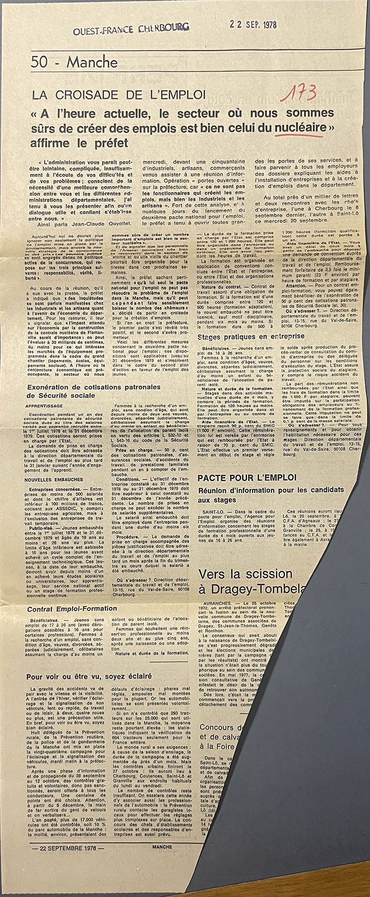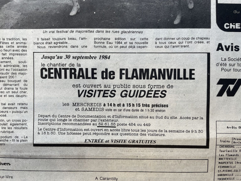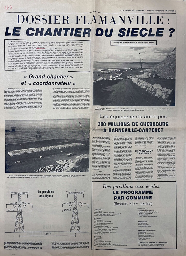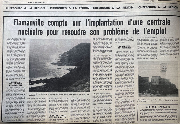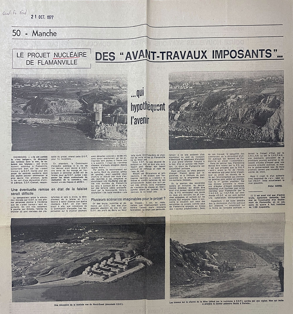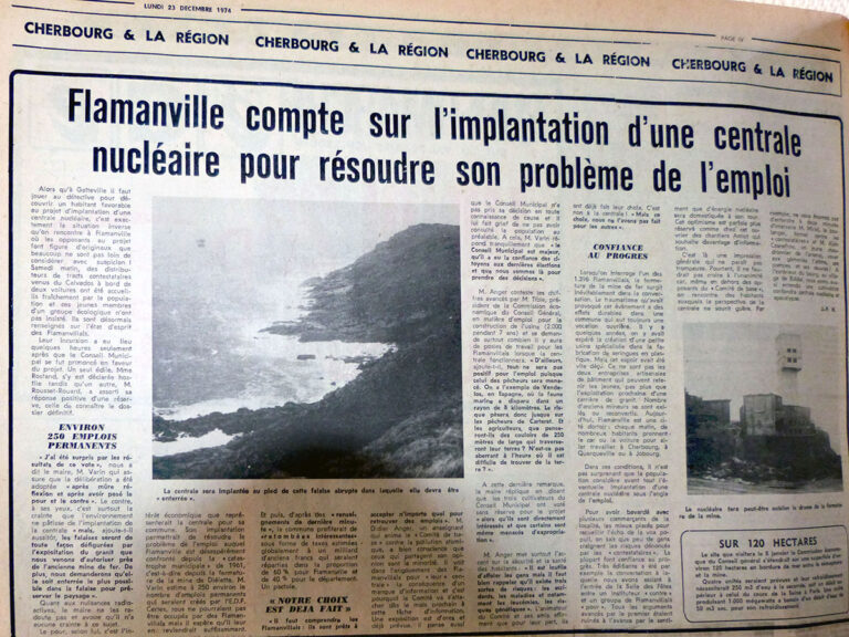 Dans le cadre de l’exposition «50 ans d’histoire pour Flamanville», vous pouvez consulter des articles de presse sur Flamanville datant de ces 50 dernières années.