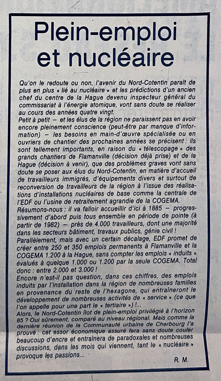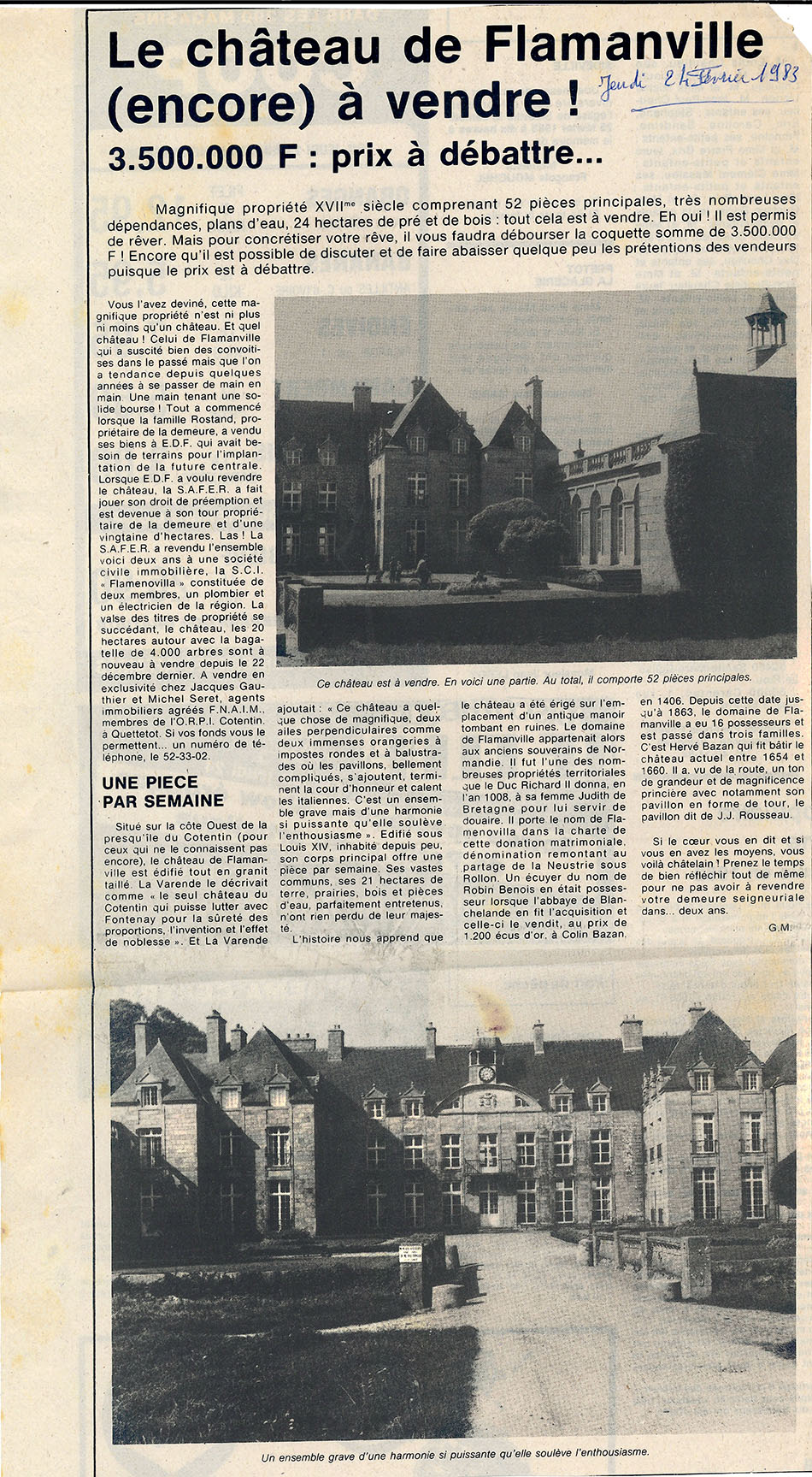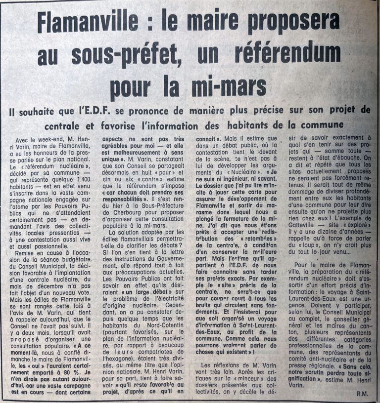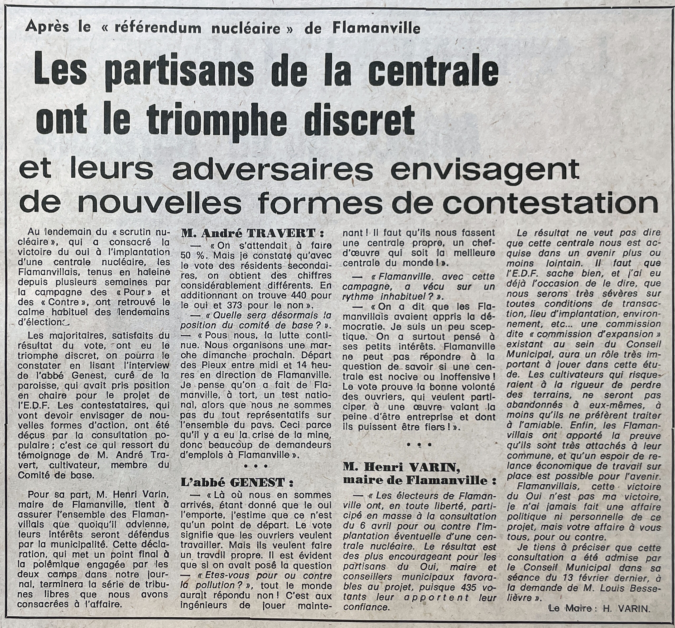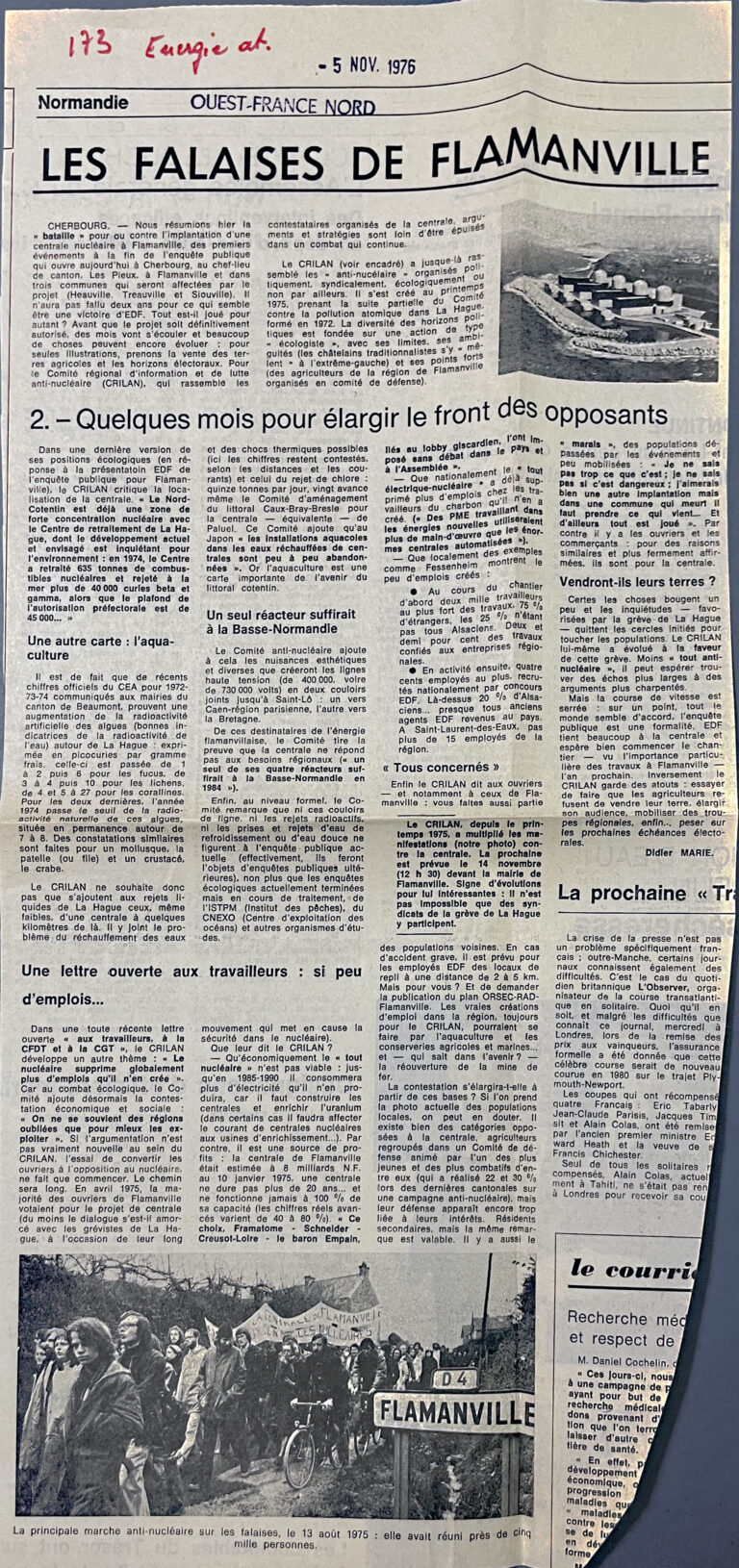 Dans le cadre de l’exposition «50 ans d’histoire pour Flamanville», vous pouvez consulter des articles de presse sur Flamanville datant de ces 50 dernières années.