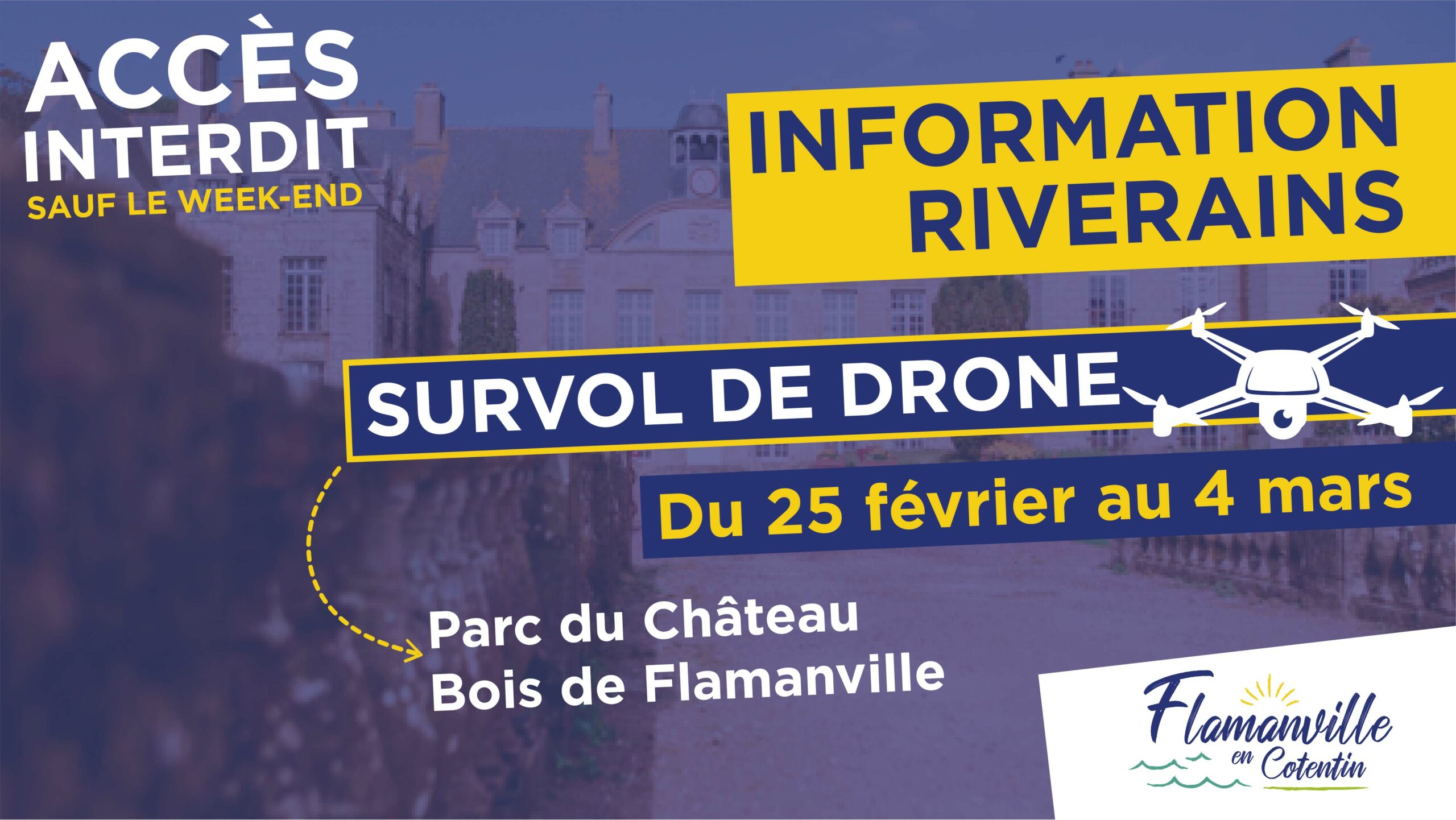Dans le cadre d’un relevé topographique réalisé par drone, le parc du château et le bois de Flamanville seront exceptionnellement fermés au public du 25 février au 4 mars inclus, hors week-end.